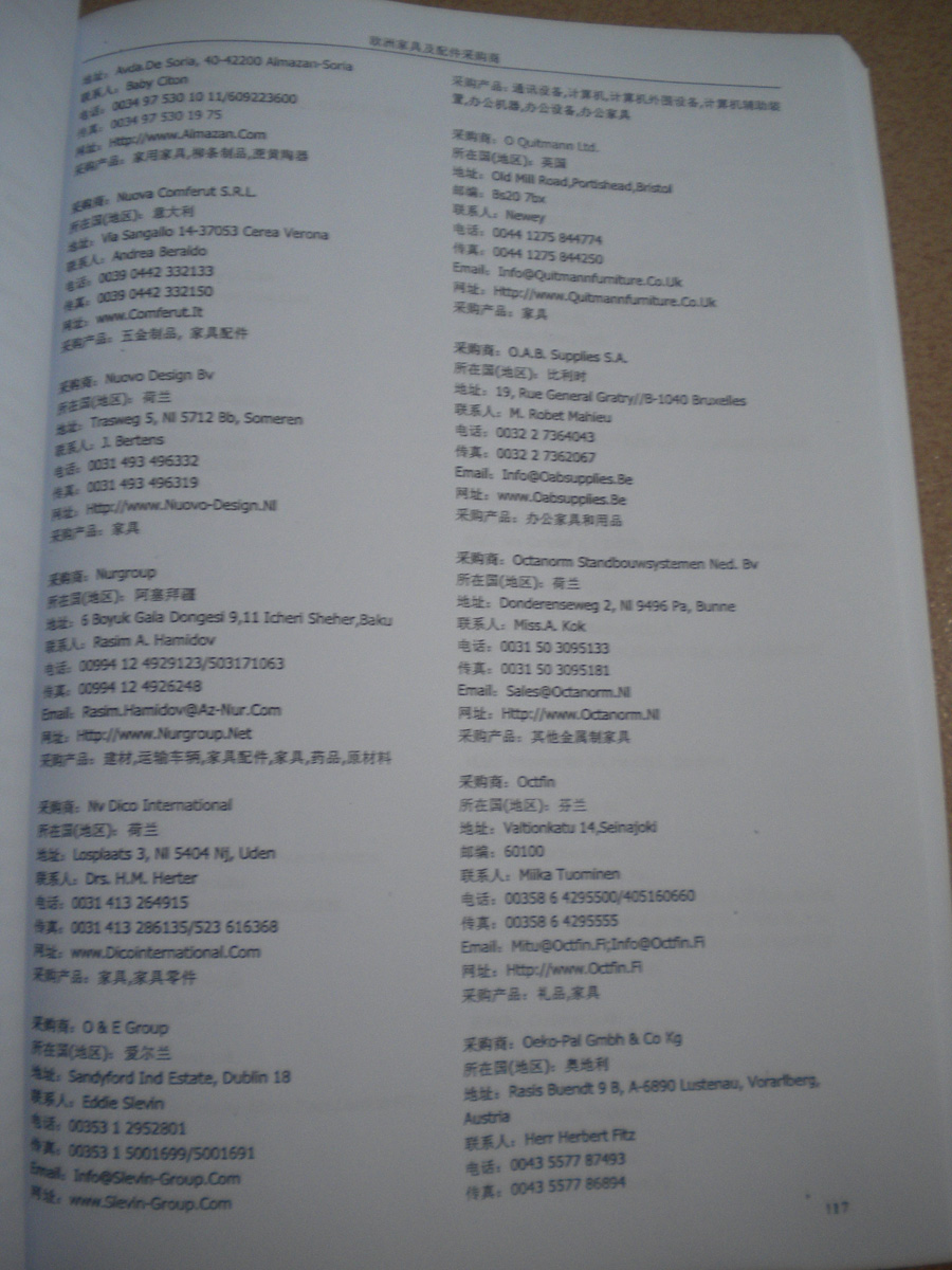 資料如何收集:在各大展會(huì)上,我們免費(fèi)向到會(huì)采購(gòu)商提供他們需要的最新產(chǎn)品雜志和光盤(pán),我們也同時(shí)向他們派發(fā)帶有我們網(wǎng)站LOGO的精美禮品,這些最新的中國(guó)供應(yīng)商的信息,對(duì)他們很有幫助,采購(gòu)商會(huì)留下他們的名片,填寫(xiě)詳細(xì)的產(chǎn)品求購(gòu)信息,以期望得到更多的供應(yīng)商的信息。收集到這些第一手的原始外商資料后,我們客戶(hù)服務(wù)中心立刻將名片掃描作成圖片,將產(chǎn)品采購(gòu)信息做成數(shù)據(jù)庫(kù),將采購(gòu)商資料按行業(yè)不同,匯編成冊(cè),出版發(fā)行《全球采購(gòu)商黃頁(yè)》系列。