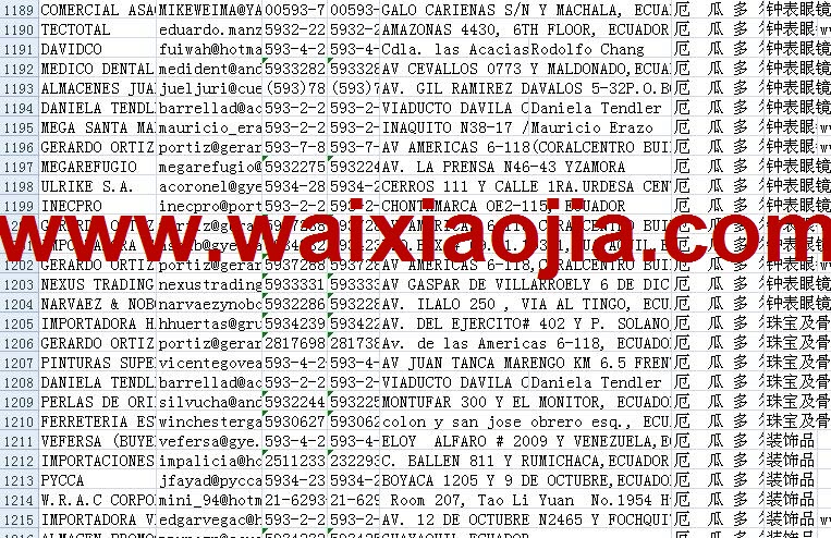 厄瓜多爾采購商名單數據為Excel格式,信息可任意修改、復制、打印、導出及導入到傳真、郵件群發等軟件中,無任何限制。