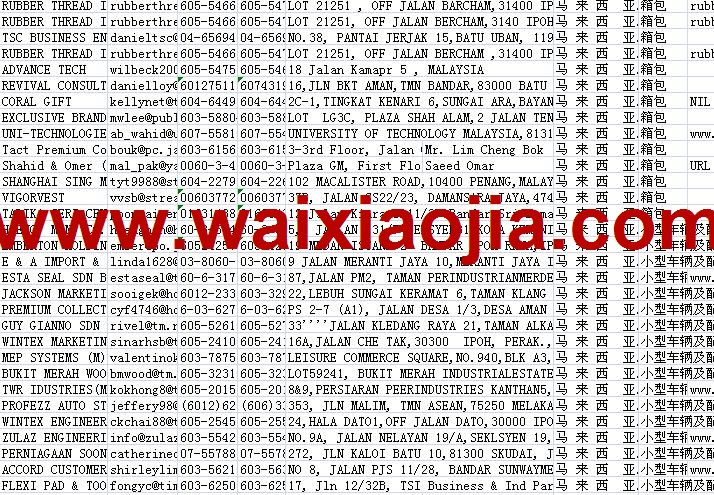 馬來西亞采購商名單數據為Excel格式,信息可任意修改、復制、打印、導出及導入到傳真、郵件群發等軟件中,無任何限制。