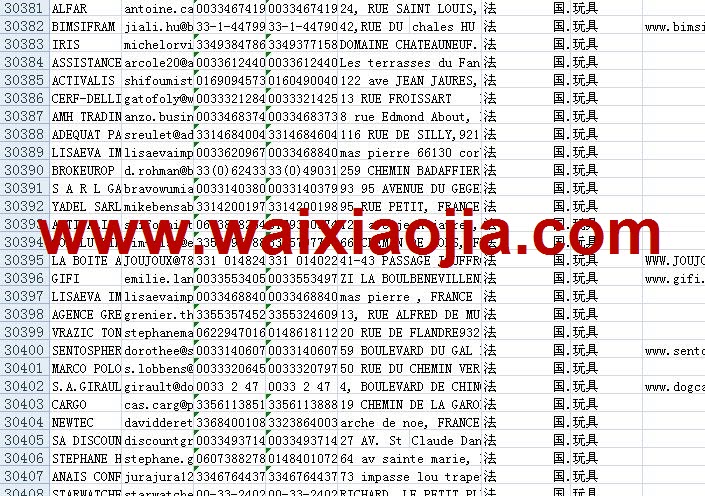 法國采購商名單數(shù)據(jù)為Excel格式,信息可任意修改、復(fù)制、打印、導(dǎo)出及導(dǎo)入到傳真、郵件群發(fā)等軟件中,無任何限制。