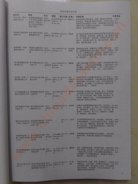 最新常州外資企業黃頁涵蓋了常州外商獨資企業、中外合資經營企業以及港、澳、臺資企業,包括常州臺資日資企業黃頁,常州外企黃頁具體內容包括:企業名稱、地址、電話、傳真、郵箱、經營范圍、注冊資金等信息;常州外資企業黃頁里面的企業都一些中外合資的大企業,這些公司經濟實力都比較雄厚,出口產品也比較多,業務范圍都比較廣,跟他們開展業務往來都比較容易;有了常州臺企日企黃頁開展業務也有了針對性,也省去了盲目去尋找客戶名單而浪費的時間了,工作效率也會有很大的提高.歡迎需要的客戶及時聯系我們!