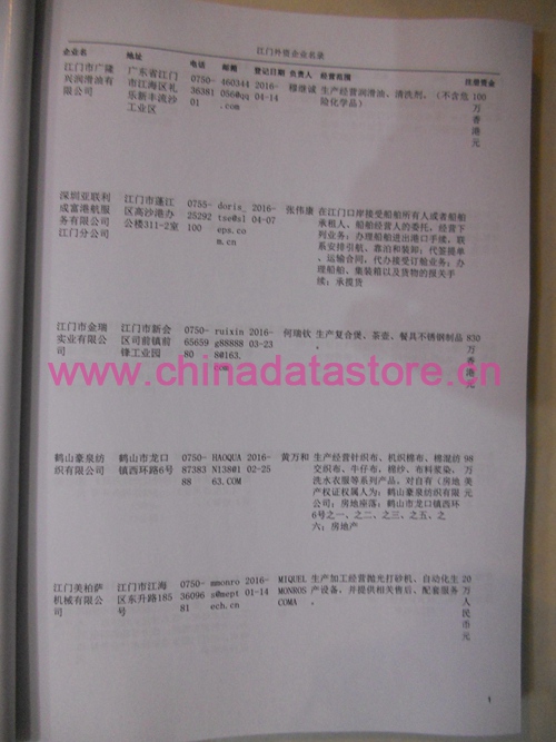| 江門外資企業黃頁 | 所有江門外企黃頁 | 80% | RMB:800元 |