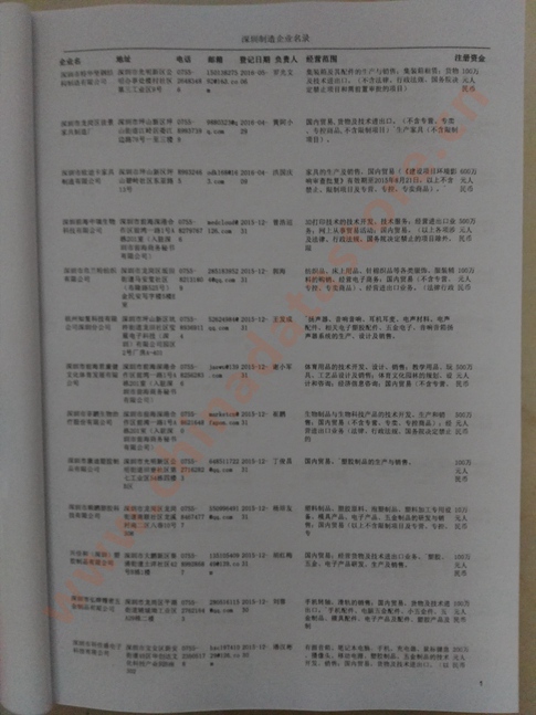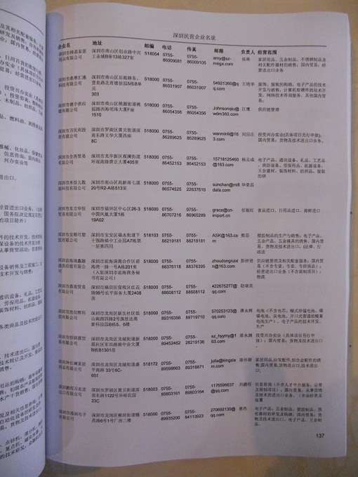 2021版最新深圳企業黃頁包括《深圳制造企業黃頁》、《深圳貿易企業黃頁》、《深圳民營企業黃頁》、《深圳外資企業黃頁》、《深圳外貿企業黃頁》共五冊,現優惠價:280元/冊。每冊內容包括:單位名稱、地址、郵編、電話、傳真、郵箱、經營范圍等;深圳企業黃頁涵蓋了近幾年來最新成立的、有一定規模的企業,具有非常高的營銷價值。有了這套黃頁開展業務也有了針對性,也省去了盲目去尋找客戶名單而浪費的時間了,工作效率也會有很大的提高。歡迎需要深圳企業黃頁的朋友及時聯系我們!