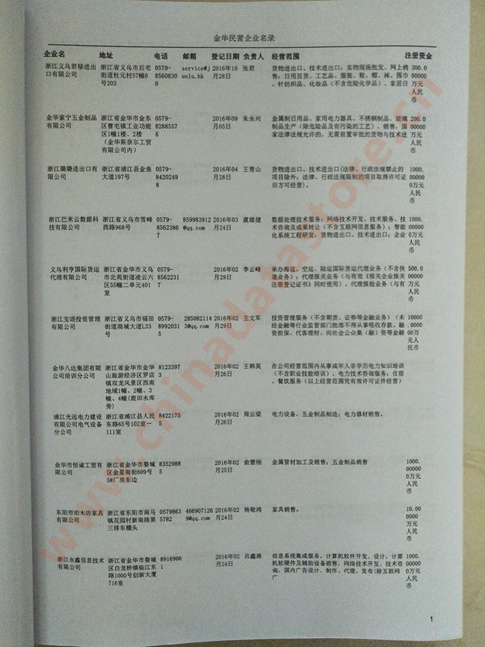 2021版最新金華企業黃頁包括《金華制造企業黃頁》、《金華貿易企業黃頁》、《金華民營企業黃頁》、《金華外資企業黃頁》、《金華外貿企業黃頁》共五冊,現優惠價:280元/冊。每冊內容包括:單位名稱、地址、郵編、電話、傳真、郵箱、經營范圍等;金華企業黃頁涵蓋了近幾年來最新成立的、有一定規模的企業,具有非常高的營銷價值。有了這套黃頁開展業務也有了針對性,也省去了盲目去尋找客戶名單而浪費的時間了,工作效率也會有很大的提高。歡迎需要金華企業黃頁的朋友及時聯系我們!