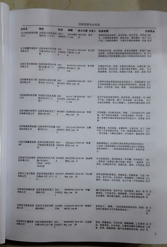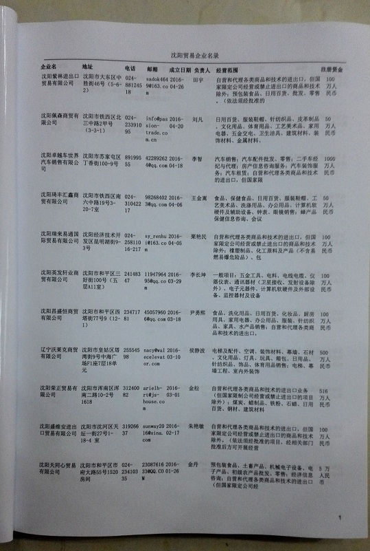 2021版最新沈陽企業黃頁包括《沈陽制造企業黃頁》、《沈陽貿易企業黃頁》、《沈陽民營企業黃頁》、《沈陽外資企業黃頁》、《沈陽外貿企業黃頁》共五冊,現優惠價:280元/冊。每冊內容包括:單位名稱、地址、郵編、電話、傳真、郵箱、經營范圍等;沈陽企業黃頁涵蓋了近幾年來最新成立的、有一定規模的企業,具有非常高的營銷價值。有了這套黃頁開展業務也有了針對性,也省去了盲目去尋找客戶名單而浪費的時間了,工作效率也會有很大的提高。歡迎需要沈陽企業黃頁的朋友及時聯系我們!