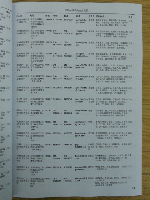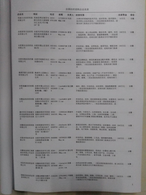 2024年新版中國紡織采購企業黃頁,收錄了全國各地經營范圍涉及紡織產品的貿易企業,這些都是頗具實力的紡織產品的中國采購商。黃頁內容包含:企業名稱、地址、電話、傳真、郵箱、經營范圍、省份、注冊資金等信息。該套黃頁包含一個黃頁光碟加一冊紙質書刊,全國價格:1500元,省/直轄市價格:400元,城市價格:200元,共收錄了全國各地大概34571(統計日期:2018.1)家紡織產品采購企業。黃頁光碟中是EXCEL格式,信息可任意修改、復制、打印、導出及導入到傳真、郵件群發等軟件中,無任何限制。