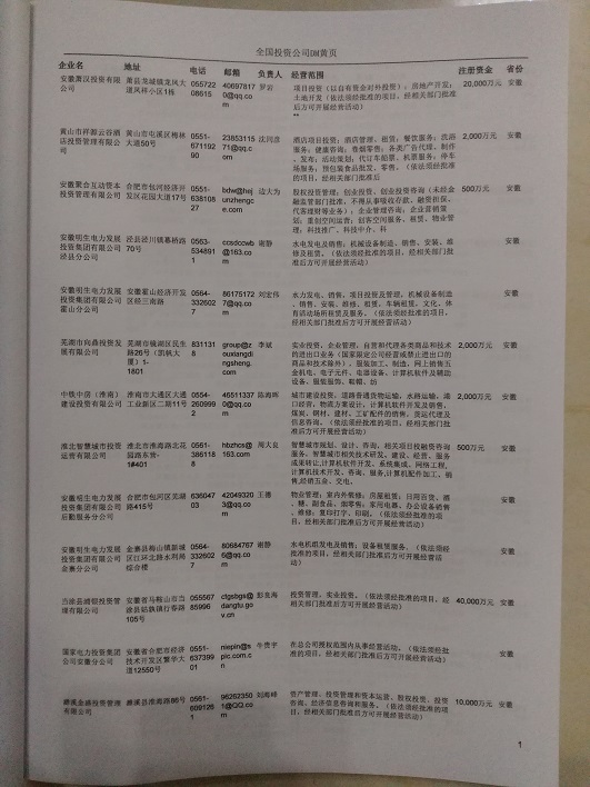 最新投資企業(yè)黃頁(yè)數(shù)據(jù)更新日期2024年12月最新,全國(guó)投資企業(yè)名單共330000條,都是具有一定規(guī)模的投資行業(yè)的注冊(cè)實(shí)體企業(yè),數(shù)據(jù)準(zhǔn)確率高,是您開(kāi)展各項(xiàng)營(yíng)銷活動(dòng)的必備資料。企業(yè)名單包括:企業(yè)名稱、地址、電話(以上必有,以下選有)、傳真、郵箱、登記日期、經(jīng)營(yíng)范圍、注冊(cè)資金等信息。投資企業(yè)黃頁(yè)數(shù)據(jù)為Excel格式,信息可任意修改、復(fù)制、打印、導(dǎo)出及導(dǎo)入到傳真、郵件群發(fā)等軟件中,無(wú)任何限制。