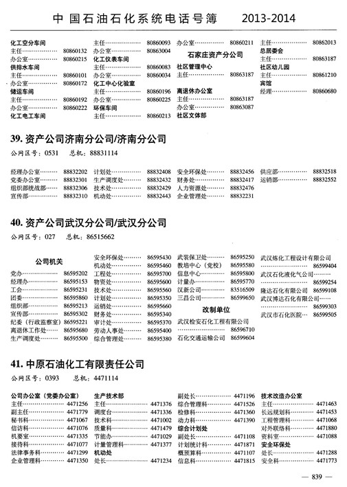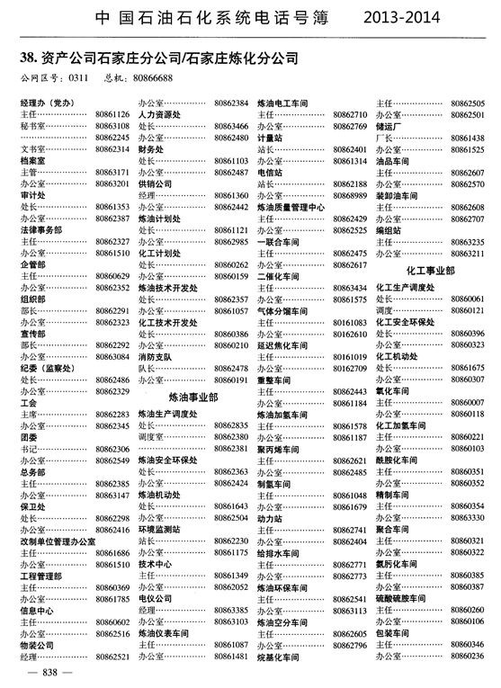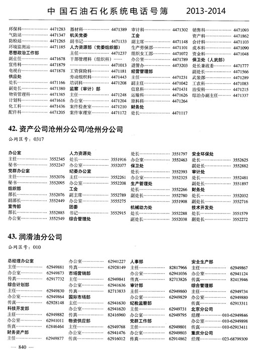 中國石油石化系統電話號薄