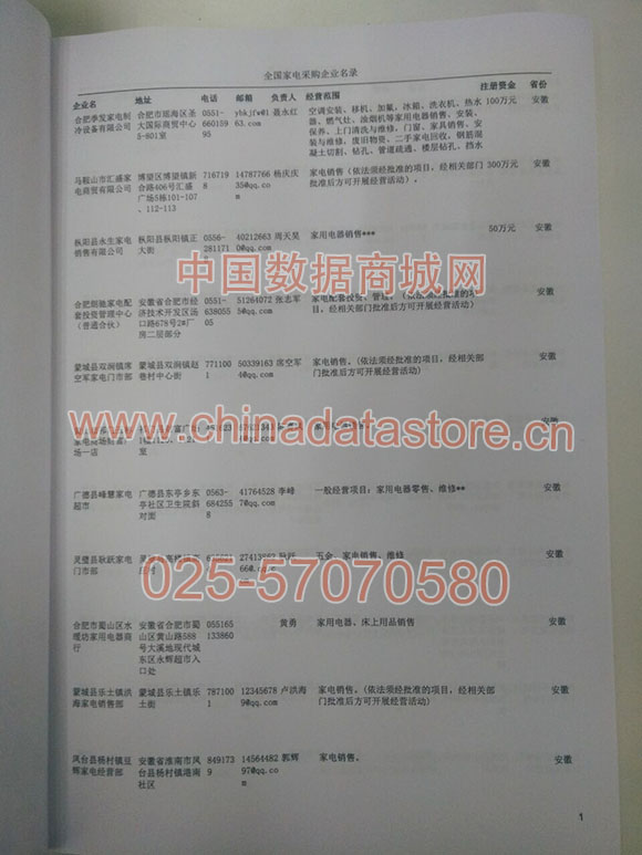 2024年新版中國家電采購企業黃頁,收錄了全國各地經營范圍涉及家電產品的貿易企業,這些都是頗具實力的家電產品的中國采購商。黃頁內容包含:企業名稱、地址、電話、傳真、郵箱、經營范圍、省份、注冊資金等信息。該套黃頁包含一個黃頁光碟加一冊紙質書刊,全國價格:1500家,省/直轄市價格:400家,城市價格:200家,共收錄了全國各地大概15959(統計日期:2018.1)家電產品采購企業。黃頁光碟中是EXCEL格式,信息可任意修改、復制、打印、導出及導入到傳真、郵件群發等軟件中,無任何限制。
