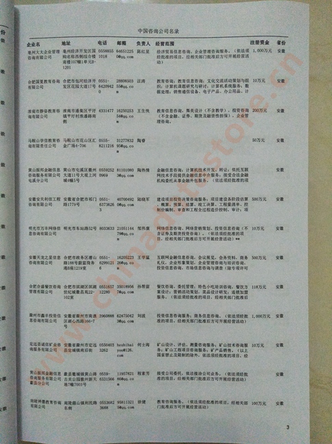 | 全國咨詢公司企業黃頁 | 全國咨詢公司企業黃頁 | 80% - 90% | 3000元 | 附贈上下冊咨詢公司紙質印刷品 |