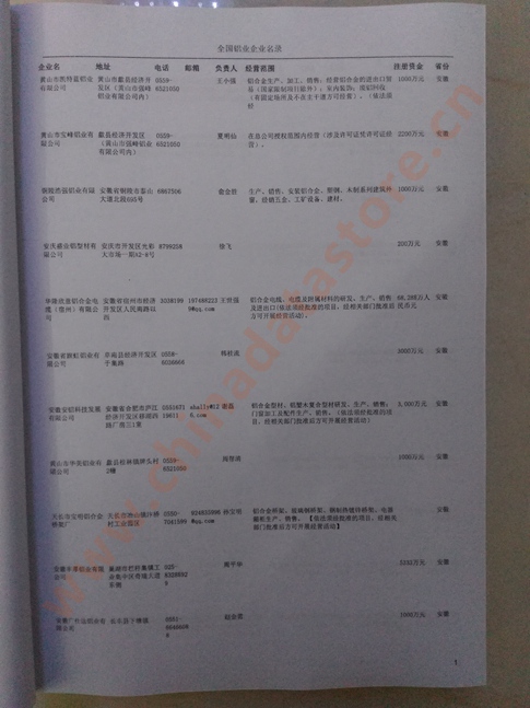 | 全國鋁業企業黃頁 | 全國所有鋁業企業黃頁 | 80% - 90% | 2000元 | 附贈一冊鋁業黃頁印刷品 |