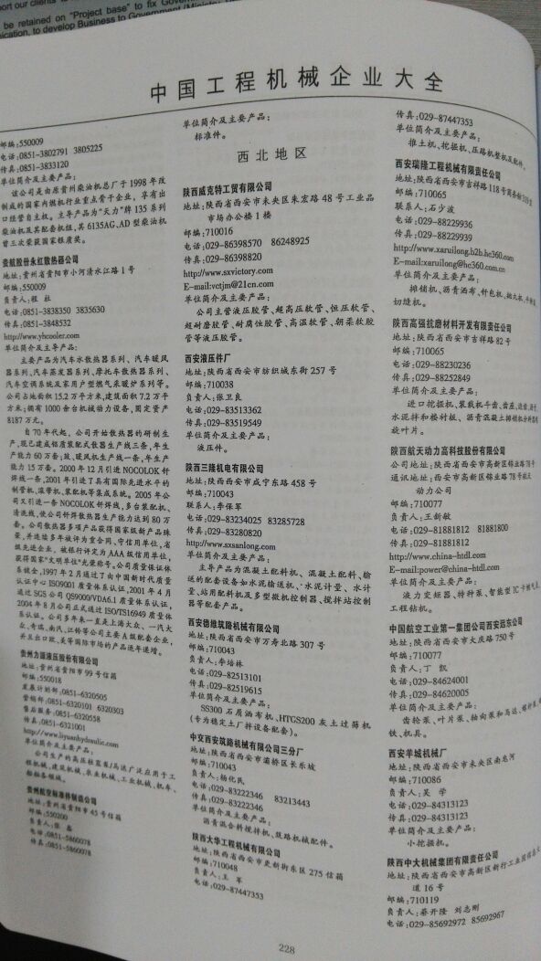 全國機械企業黃頁 全國所有機械企業黃頁 80% - 90% 3000元 附贈一冊工程機械企業大全印刷品