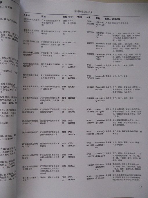 2021版最新潮州企業黃頁包括《潮州制造企業黃頁》、《潮州民營企業黃頁》,現優惠價:280元/冊。每冊內容包括:單位名稱、地址、郵編、電話、傳真、郵箱、經營范圍等;潮州企業黃頁涵蓋了近幾年來最新成立的、有一定規模的企業,具有非常高的營銷價值。有了這套黃頁開展業務也有了針對性,也省去了盲目去尋找客戶名單而浪費的時間了,工作效率也會有很大的提高。歡迎需要潮州企業黃頁的朋友及時聯系我們!