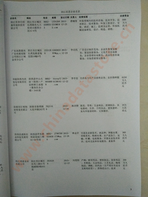 2021版最新陽江企業黃頁包括《陽江制造企業黃頁》、《陽江民營企業黃頁》,現優惠價:280元/冊。每冊內容包括:單位名稱、地址、郵編、電話、傳真、郵箱、經營范圍等;陽江企業黃頁涵蓋了近幾年來最新成立的、有一定規模的企業,具有非常高的營銷價值。有了這套黃頁開展業務也有了針對性,也省去了盲目去尋找客戶名單而浪費的時間了,工作效率也會有很大的提高。歡迎需要陽江企業黃頁的朋友及時聯系我們!