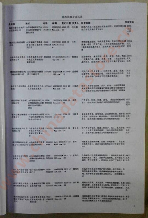 2021版最新臨沂企業(yè)黃頁包括《臨沂制造企業(yè)黃頁》、《臨沂民營企業(yè)黃頁》,現(xiàn)優(yōu)惠價:280元/冊。每冊內(nèi)容包括:單位名稱、地址、郵編、電話、傳真、郵箱、經(jīng)營范圍等;臨沂企業(yè)黃頁涵蓋了近幾年來最新成立的、有一定規(guī)模的企業(yè),具有非常高的營銷價值。有了這套黃頁開展業(yè)務也有了針對性,也省去了盲目去尋找客戶名單而浪費的時間了,工作效率也會有很大的提高。歡迎需要臨沂企業(yè)黃頁的朋友及時聯(lián)系我們!
