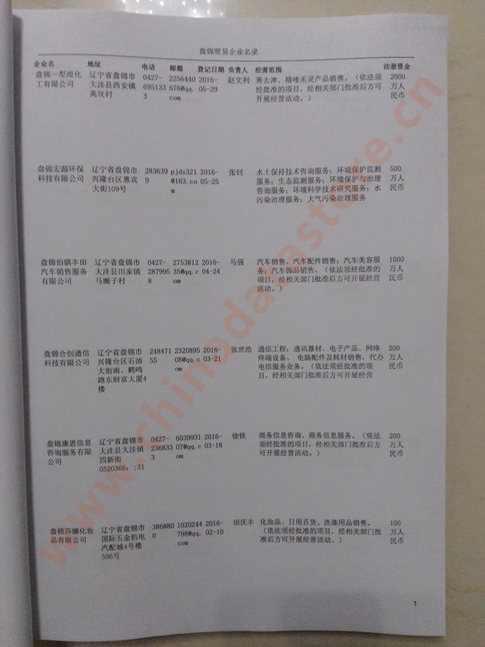 2021版最新盤錦企業黃頁包括《盤錦制造企業黃頁》、《盤錦民營企業黃頁》,現優惠價:280元/冊。每冊內容包括:單位名稱、地址、郵編、電話、傳真、郵箱、經營范圍等;盤錦企業黃頁涵蓋了近幾年來最新成立的、有一定規模的企業,具有非常高的營銷價值。有了這套黃頁開展業務也有了針對性,也省去了盲目去尋找客戶名單而浪費的時間了,工作效率也會有很大的提高。歡迎需要盤錦企業黃頁的朋友及時聯系我們!