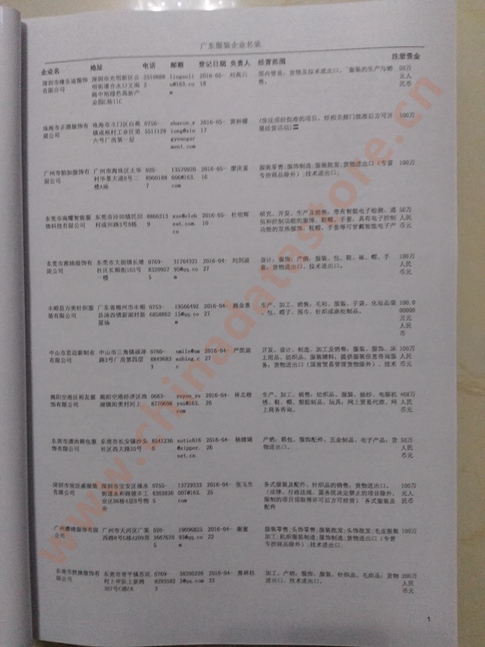 | 廣東服裝企業黃頁 | 所有廣東服裝企業黃頁 | 80% - 90% | 600元 | 附贈一冊廣東服裝紙質印刷品 |