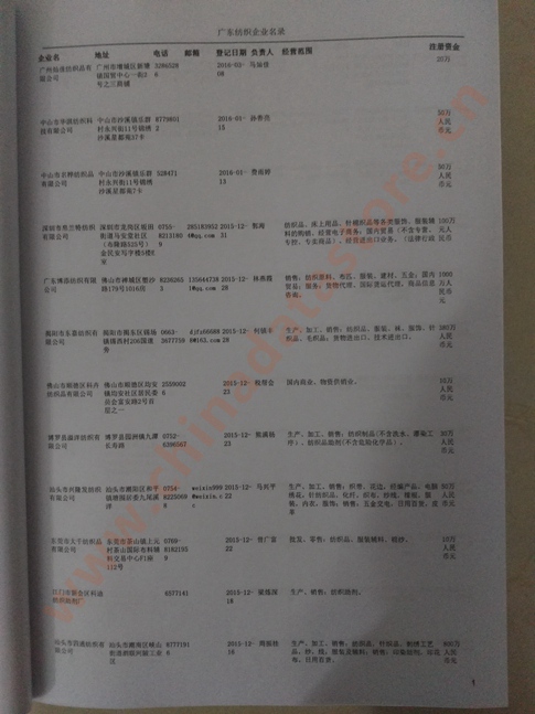 | 廣東紡織企業黃頁 | 所有廣東紡織企業黃頁 | 80% - 90% | 600元 | 附贈一冊廣東紡織紙質印刷品 |