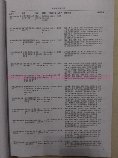 | 江蘇服裝企業黃頁 | 所有江蘇服裝企業黃頁 | 80% - 90% | 600元 | 附贈一冊江蘇服裝紙質印刷品 |