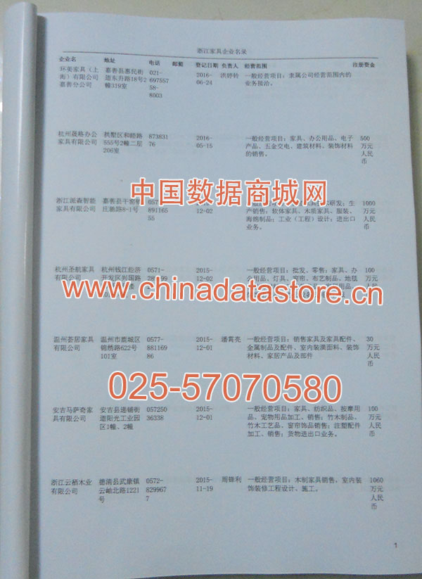 | 浙江家具企業(yè)黃頁 | 所有浙江家具企業(yè)黃頁 | 80% - 90% | 600元 | 附贈(zèng)一冊(cè)浙江家具紙質(zhì)印刷品 |