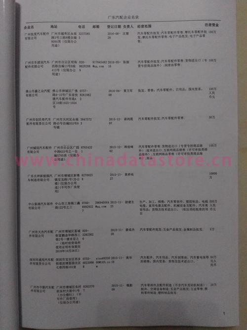 | 廣東汽配企業黃頁 | 所有廣東汽配企業黃頁 | 80% - 90% | 600元 | 附贈一冊廣東汽配紙質印刷品 |