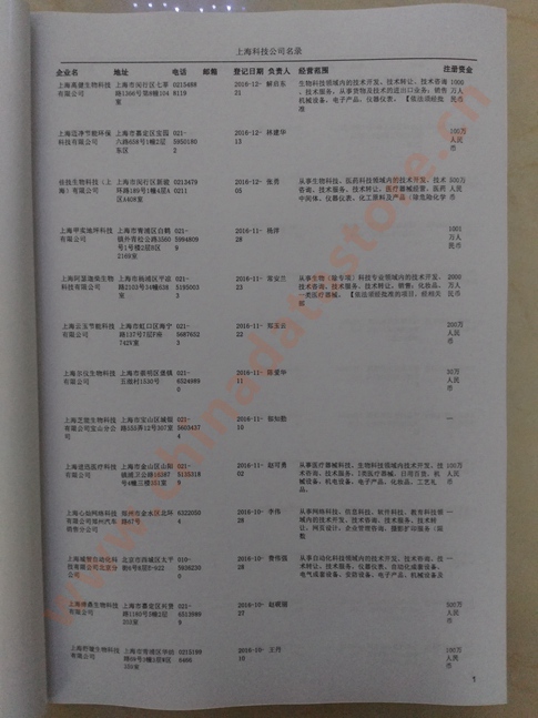 最新上海科技生產(chǎn)與貿(mào)易企業(yè)黃頁數(shù)據(jù)更新日期2024年12月最新,全國上海科技企業(yè)黃頁,都是具有一定規(guī)模的上海科技行業(yè)的注冊實(shí)體企業(yè),數(shù)據(jù)準(zhǔn)確率高,是您開展各項(xiàng)營銷活動(dòng)的必備資料。企業(yè)名單包括:企業(yè)名稱、地址、電話(以上必有,以下選有)、傳真、郵箱、登記日期、經(jīng)營范圍、注冊資金等信息。上海科技企業(yè)黃頁數(shù)據(jù)為Excel格式,信息可任意修改、復(fù)制、打印、導(dǎo)出及導(dǎo)入到傳真、郵件群發(fā)等軟件中,無任何限制。