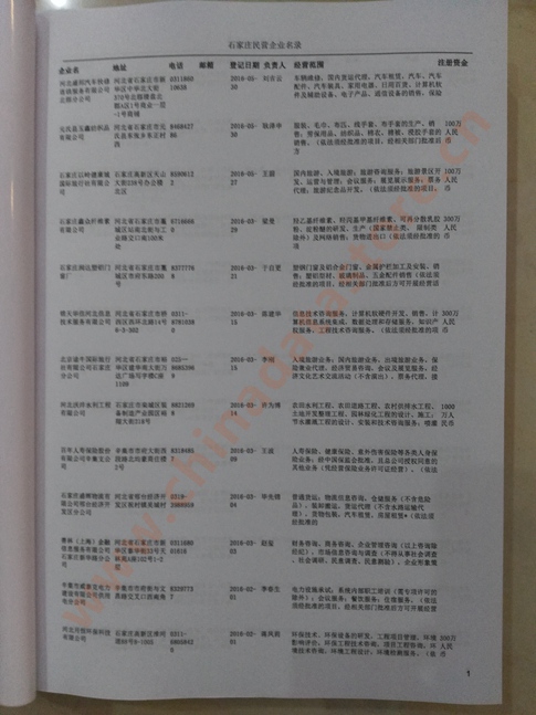 2021版最新石家莊企業黃頁包括《石家莊制造企業黃頁》、《石家莊民營企業黃頁》,現優惠價:280元/冊。每冊內容包括:單位名稱、地址、郵編、電話、傳真、郵箱、經營范圍等;石家莊企業黃頁涵蓋了近幾年來最新成立的、有一定規模的企業,具有非常高的營銷價值。有了這套黃頁開展業務也有了針對性,也省去了盲目去尋找客戶名單而浪費的時間了,工作效率也會有很大的提高。歡迎需要石家莊企業黃頁的朋友及時聯系我們!