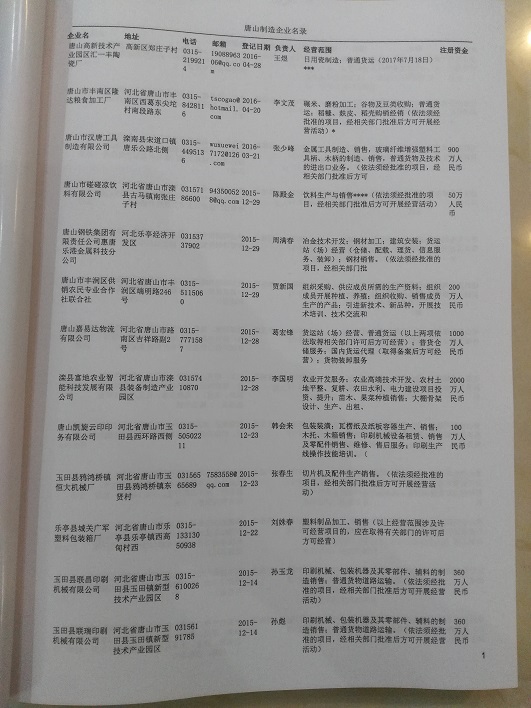 2021版最新唐山企業黃頁包括《唐山制造企業黃頁》、《唐山民營企業黃頁》,現優惠價:280元/冊。每冊內容包括:單位名稱、地址、郵編、電話、傳真、郵箱、經營范圍等;唐山企業黃頁涵蓋了近幾年來最新成立的、有一定規模的企業,具有非常高的營銷價值。有了這套黃頁開展業務也有了針對性,也省去了盲目去尋找客戶名單而浪費的時間了,工作效率也會有很大的提高。歡迎需要唐山企業黃頁的朋友及時聯系我們!