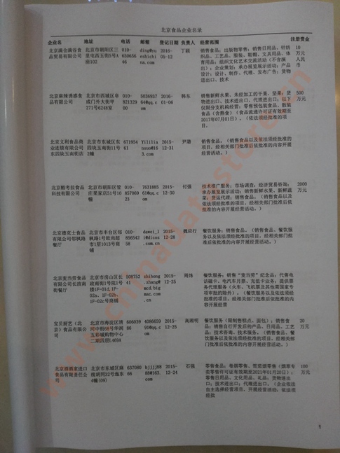 | 北京食品企業黃頁 | 所有北京食品企業黃頁 | 80% - 90% | 600元 | 附贈一冊北京食品紙質印刷品 |
