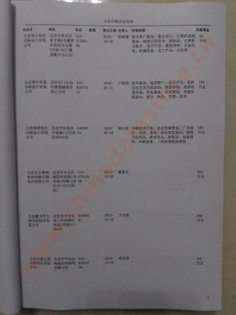 | 北京印刷企業黃頁 | 所有北京印刷企業黃頁 | 80% - 90% | 600元 | 附贈一冊北京印刷紙質印刷品 |