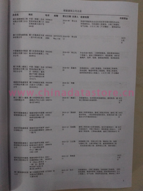 | 福建建筑工程企業黃頁 | 所有福建建筑工程企業黃頁 | 80% - 90% | 600元 | 附贈一冊福建建筑工程紙質印刷品 |