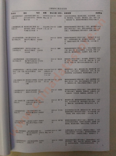 最新上海裝飾裝修生產與貿易企業黃頁數據更新日期2024年12月最新,上海裝飾裝修企業黃頁,都是具有一定規模的上海裝飾裝修行業的注冊實體企業,數據準確率高,是您開展各項營銷活動的必備資料。企業名單包括:企業名稱、地址、電話(以上必有,以下選有)、傳真、郵箱、登記日期、經營范圍、注冊資金等信息。上海裝飾裝修企業黃頁數據為Excel格式,信息可任意修改、復制、打印、導出及導入到傳真、郵件群發等軟件中,無任何限制。