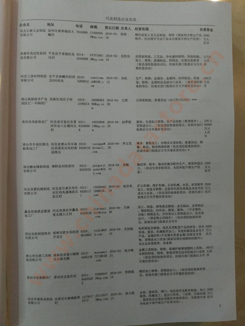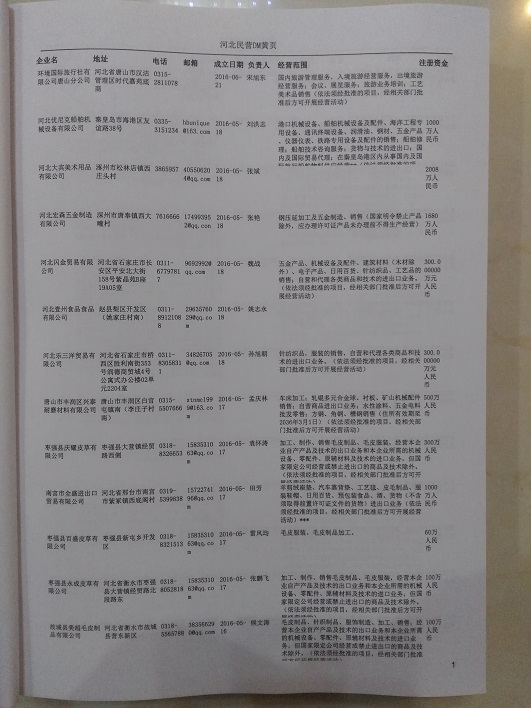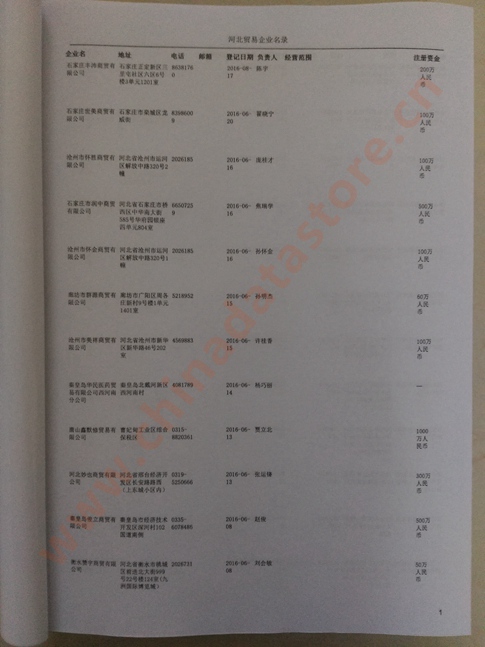 2021版最新河北企業(yè)黃頁包括《河北制造企業(yè)黃頁》、《河北貿(mào)易企業(yè)黃頁》、《河北民營企業(yè)黃頁》共三冊,優(yōu)惠價:280元/冊。每冊內(nèi)容包括:單位名稱、地址、郵編、電話、傳真、郵箱、經(jīng)營范圍等;河北企業(yè)黃頁涵蓋了近幾年來最新成立的、有一定規(guī)模的企業(yè),具有非常高的營銷價值。有了這套黃頁開展業(yè)務(wù)也有了針對性,也省去了盲目去尋找客戶名單而浪費的時間了,工作效率也會有很大的提高。歡迎需要河北企業(yè)黃頁的朋友及時聯(lián)系我們!