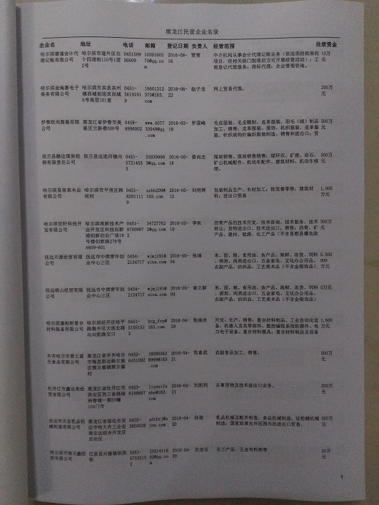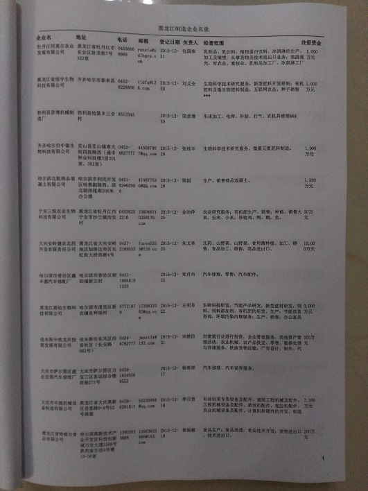 2021版最新黑龍江企業黃頁包括《黑龍江制造企業黃頁》、《黑龍江貿易企業黃頁》、《黑龍江民營企業黃頁》共三冊,優惠價:280元/冊。每冊內容包括:單位名稱、地址、郵編、電話、傳真、郵箱、經營范圍等;黑龍江企業黃頁涵蓋了近幾年來最新成立的、有一定規模的企業,具有非常高的營銷價值。有了這套黃頁開展業務也有了針對性,也省去了盲目去尋找客戶名單而浪費的時間了,工作效率也會有很大的提高。歡迎需要黑龍江企業黃頁的朋友及時聯系我們!