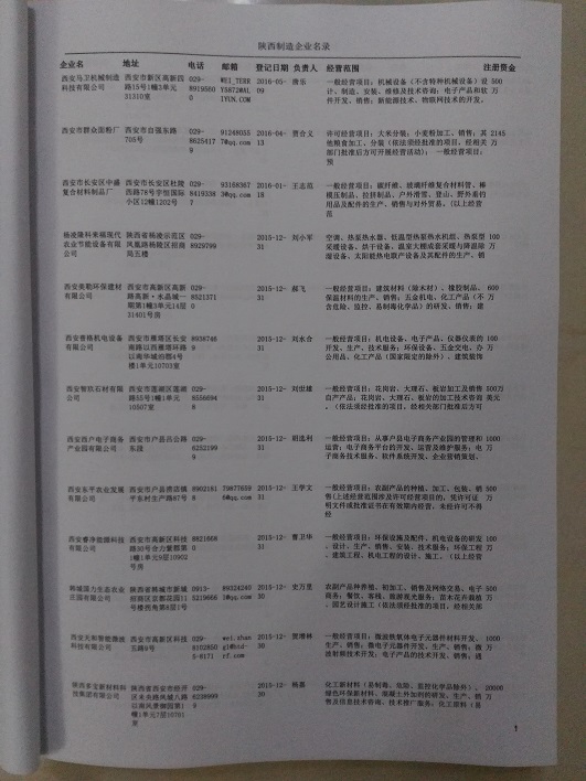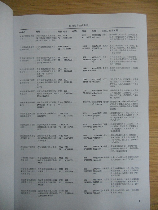 2021版最新陜西企業(yè)黃頁包括《陜西制造企業(yè)黃頁》、《陜西貿(mào)易企業(yè)黃頁》、《陜西民營企業(yè)黃頁》共三冊,優(yōu)惠價:280元/冊。每冊內(nèi)容包括:單位名稱、地址、郵編、電話、傳真、郵箱、經(jīng)營范圍等;陜西企業(yè)黃頁涵蓋了近幾年來最新成立的、有一定規(guī)模的企業(yè),具有非常高的營銷價值。有了這套黃頁開展業(yè)務(wù)也有了針對性,也省去了盲目去尋找客戶名單而浪費(fèi)的時間了,工作效率也會有很大的提高。歡迎需要陜西企業(yè)黃頁的朋友及時聯(lián)系我們!