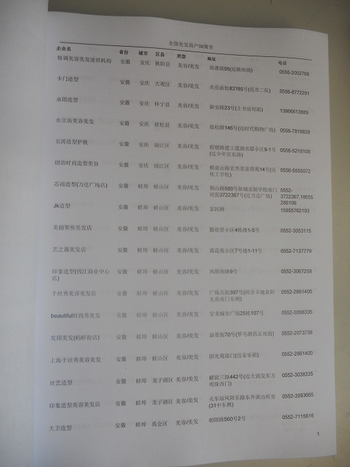 最新美發(fā)商戶黃頁(yè)數(shù)據(jù)更新日期2024年12月最新,全國(guó)美發(fā)商戶名單共65100條,都是具有一定規(guī)模的美發(fā)商戶行業(yè)的注冊(cè)實(shí)體企業(yè),數(shù)據(jù)準(zhǔn)確率高,是您開(kāi)展各項(xiàng)營(yíng)銷(xiāo)活動(dòng)的必備資料。企業(yè)名單包括:美發(fā)商戶名稱(chēng)、地址、省份、城市、電話、經(jīng)營(yíng)范圍、營(yíng)業(yè)時(shí)間等信息。美發(fā)商戶黃頁(yè)數(shù)據(jù)為Excel格式,信息可任意修改、復(fù)制、打印,無(wú)任何限制。