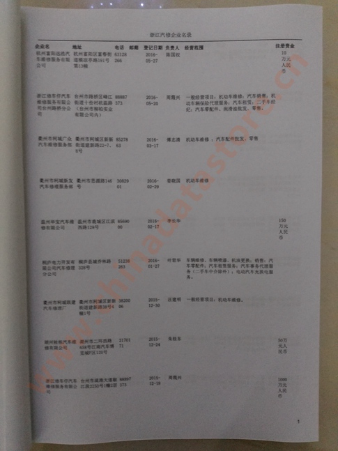 | 浙江汽車維修企業黃頁 | 所有浙江汽車維修企業黃頁 | 80% - 90% | 600元 | 附贈一冊浙江汽車維修紙質印刷品 |