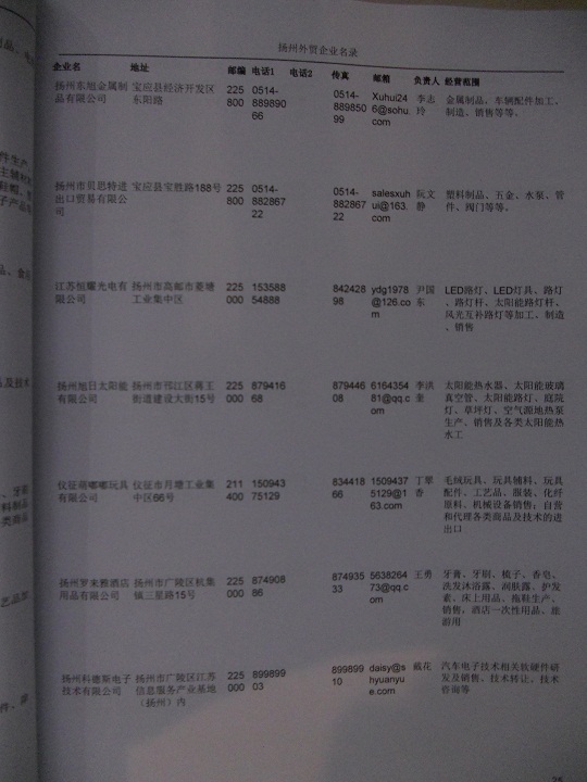 揚州外貿企業名錄揚州進出口企業名錄,揚州進口企業名錄,揚州出口企業名錄