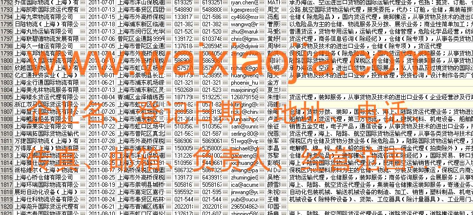 上海貨運代理公司名單數據為Excel格式,信息可任意修改、復制、打印、導出及導入到傳真、郵件群發等軟件中,無任何限制。