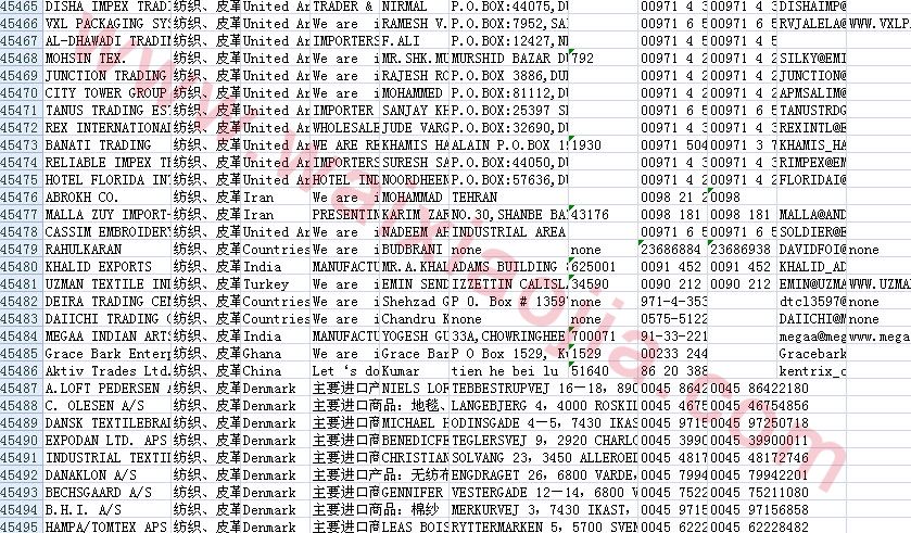 紡織、皮革、羽絨采購商名單數據為Excel格式,信息可任意修改、復制、打印、導出及導入到傳真、郵件群發等軟件中,無任何限制。