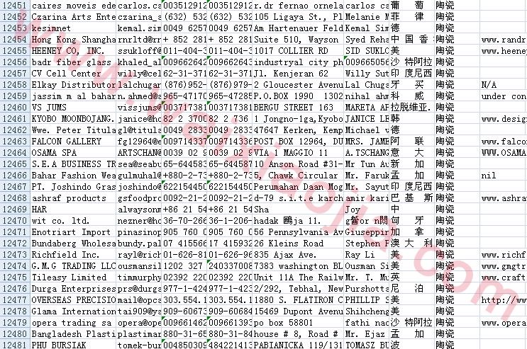 陶瓷采購商名單數據為Excel格式,信息可任意修改、復制、打印、導出及導入到傳真、郵件群發等軟件中,無任何限制。