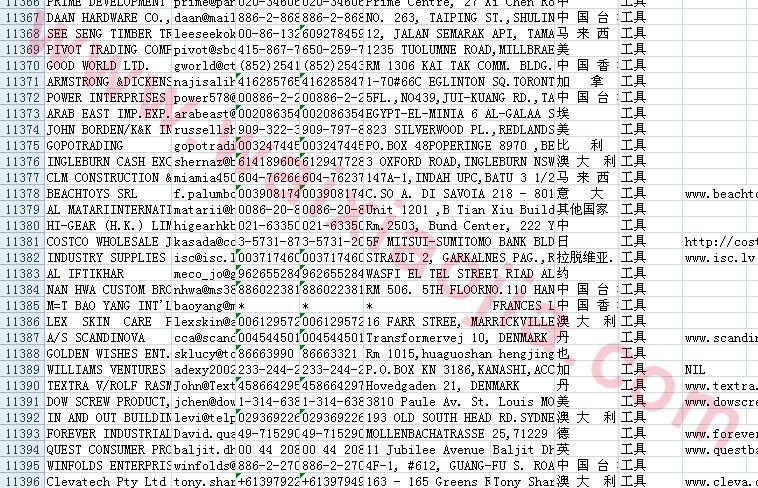 工具采購(gòu)商名單數(shù)據(jù)為Excel格式,信息可任意修改、復(fù)制、打印、導(dǎo)出及導(dǎo)入到傳真、郵件群發(fā)等軟件中,無(wú)任何限制。