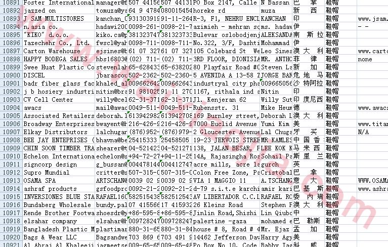 鞋帽采購商名單數據為Excel格式,信息可任意修改、復制、打印、導出及導入到傳真、郵件群發等軟件中,無任何限制。
