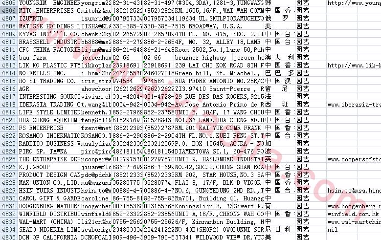 園藝采購商名單數據為Excel格式,信息可任意修改、復制、打印、導出及導入到傳真、郵件群發等軟件中,無任何限制。