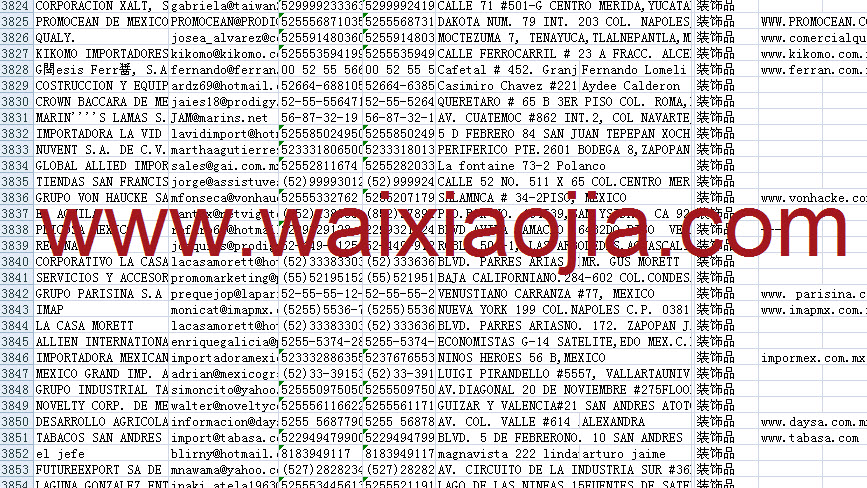 墨西哥采購商名單數據為Excel格式,信息可任意修改、復制、打印、導出及導入到傳真、郵件群發等軟件中,無任何限制。