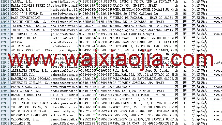 西班牙采購商名單數據為Excel格式,信息可任意修改、復制、打印、導出及導入到傳真、郵件群發等軟件中,無任何限制。