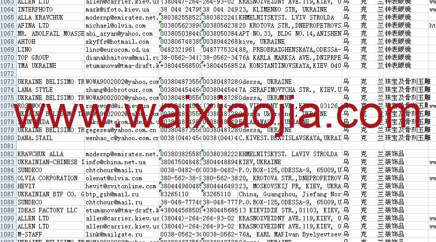 烏克蘭采購商名單數據為Excel格式,信息可任意修改、復制、打印、導出及導入到傳真、郵件群發等軟件中,無任何限制。